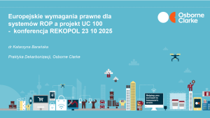 Europejskie wymagania prawne dla systemów ROP, a projekt UC100 dr Katarzyna Barańska | Partner, Head of Decarbonisation Osborne Clarke Olkiewicz Świerzewski i Wspólnicy S.K.A. |